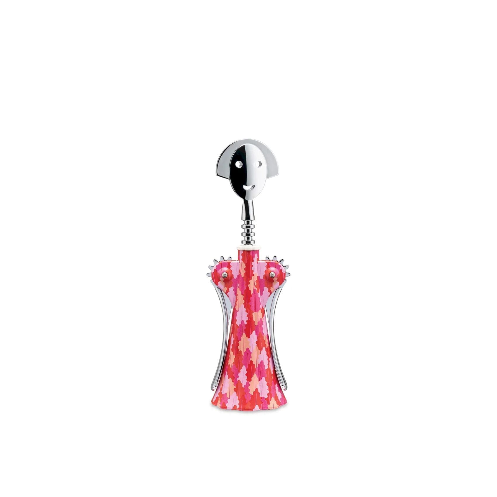 Per celebrare l’iconica coppia di cavatappi disegnati dal padre Alessandro, Fulvia Mendini ha immaginato una favola ambientata in un bosco di querce dove i due personaggi danzano in un’infinita ricerca di desideri e segreti. Anna G. si veste di un nuovo abito arboreo, un pattern accattivante che valorizza il disegno morbido e delicato di questo iconico cavatappi, nei toni del rosa. Corpo realizzato in AlkiPaper®, biocomposito brevettato a base di carta, altre materie prime di origine naturale e componenti funzionali.