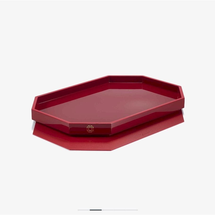 Il vassoio Octogone è una splendida creazione laccata, disponibile in tre misure. Una serie di raffinati accessori laccati e ispirati all’ottagono rosso, la forma più iconica di Baccarat, compone queste nuove creazioni e va ad arricchire la collezione Octogone. Il vassoio, a forma di ottagono, è stato meticolosamente realizzato a mano con artigianalità ancestrale. La superficie brillante cattura la luce e mette in risalto le creazioni in cristallo di Baccarat. Ogni vassoio è rifinito con un inserto in pelle rimovibile, che dona un elegante contrasto di materiali e texture. Il vassoio Octogone viene proposto in diverse tonalità, che si rinnovano ogni stagione e possono essere abbinate al sottobicchiere della stessa collezione.