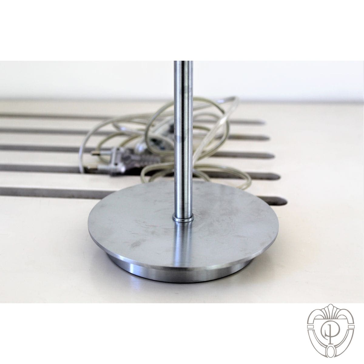 Lampada da tavolo con base in acciaio satinato e paralume in cristrallo trasparente