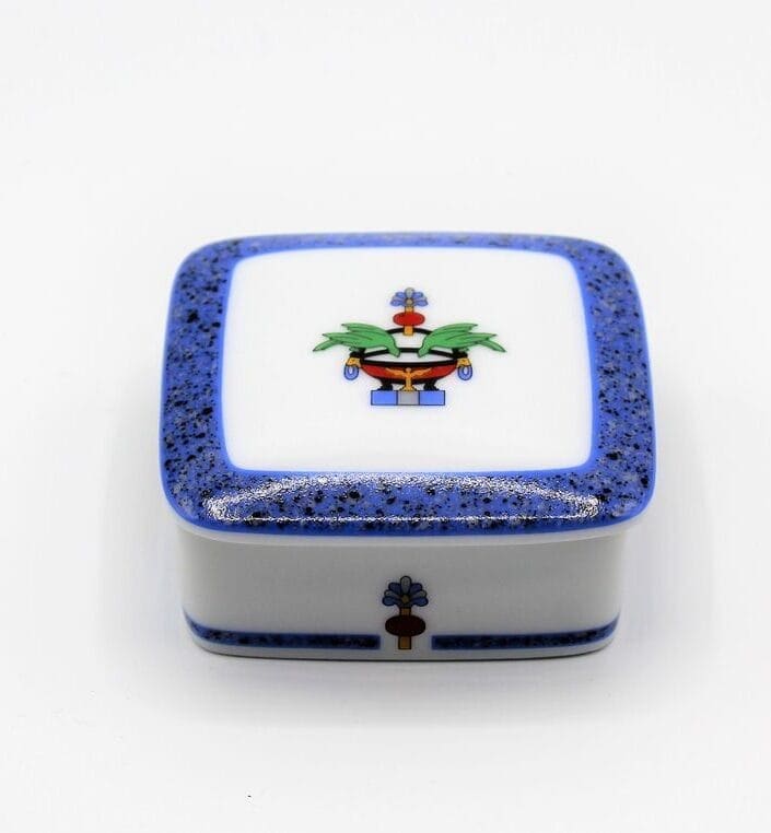 Cartier scatolina in porcellana limoges decoro blu cobalto