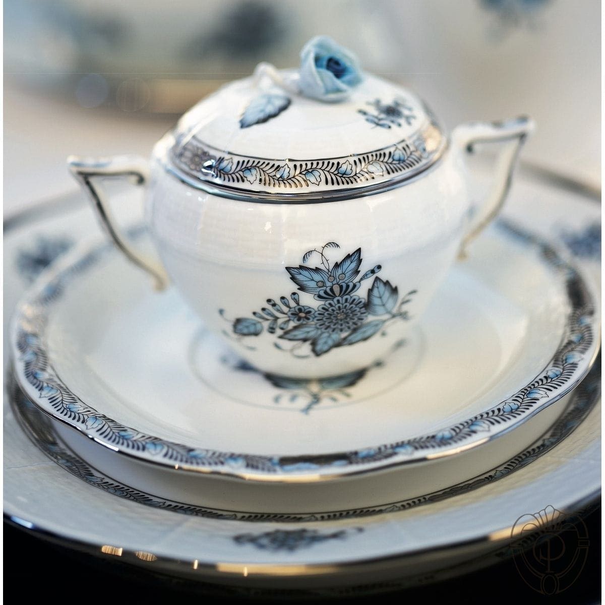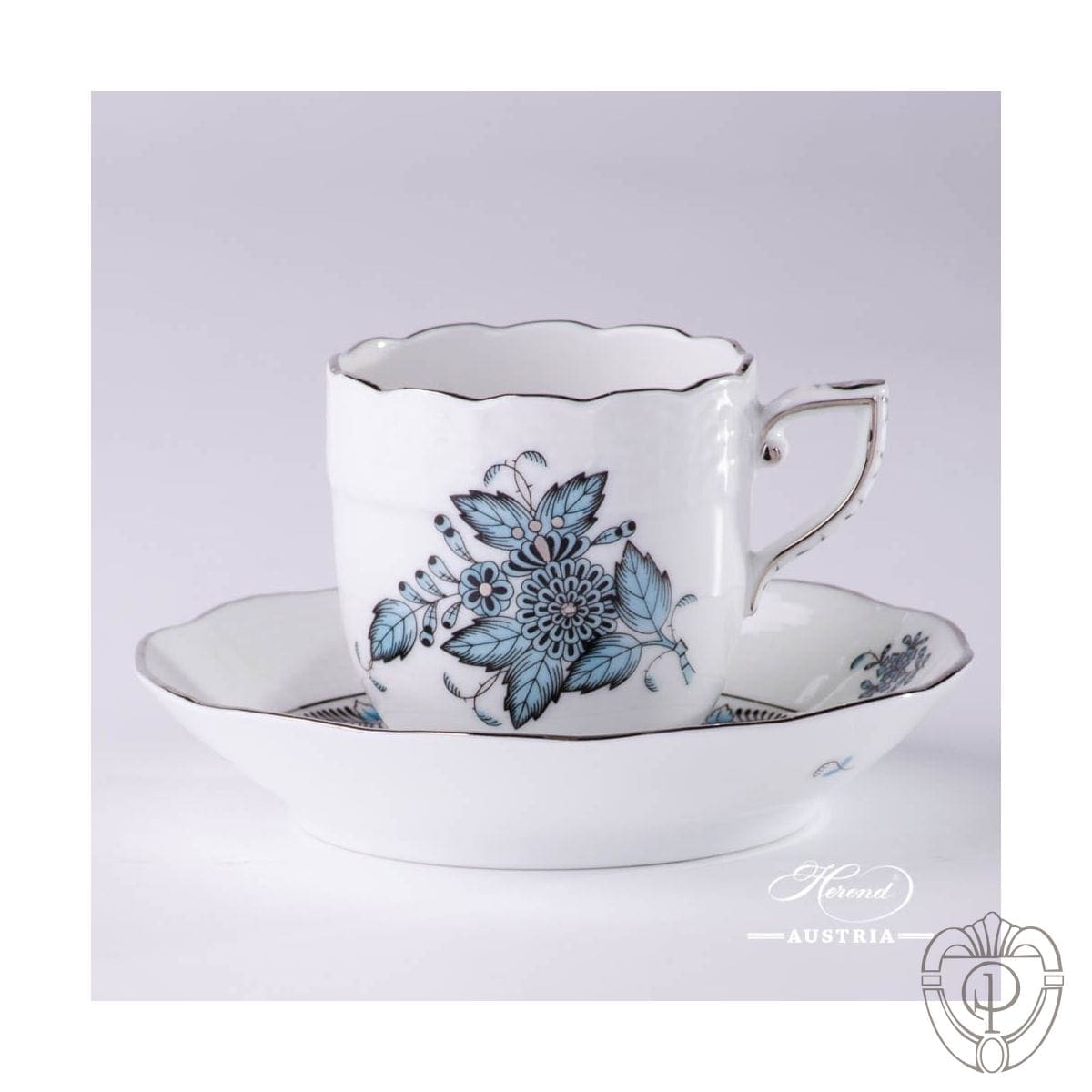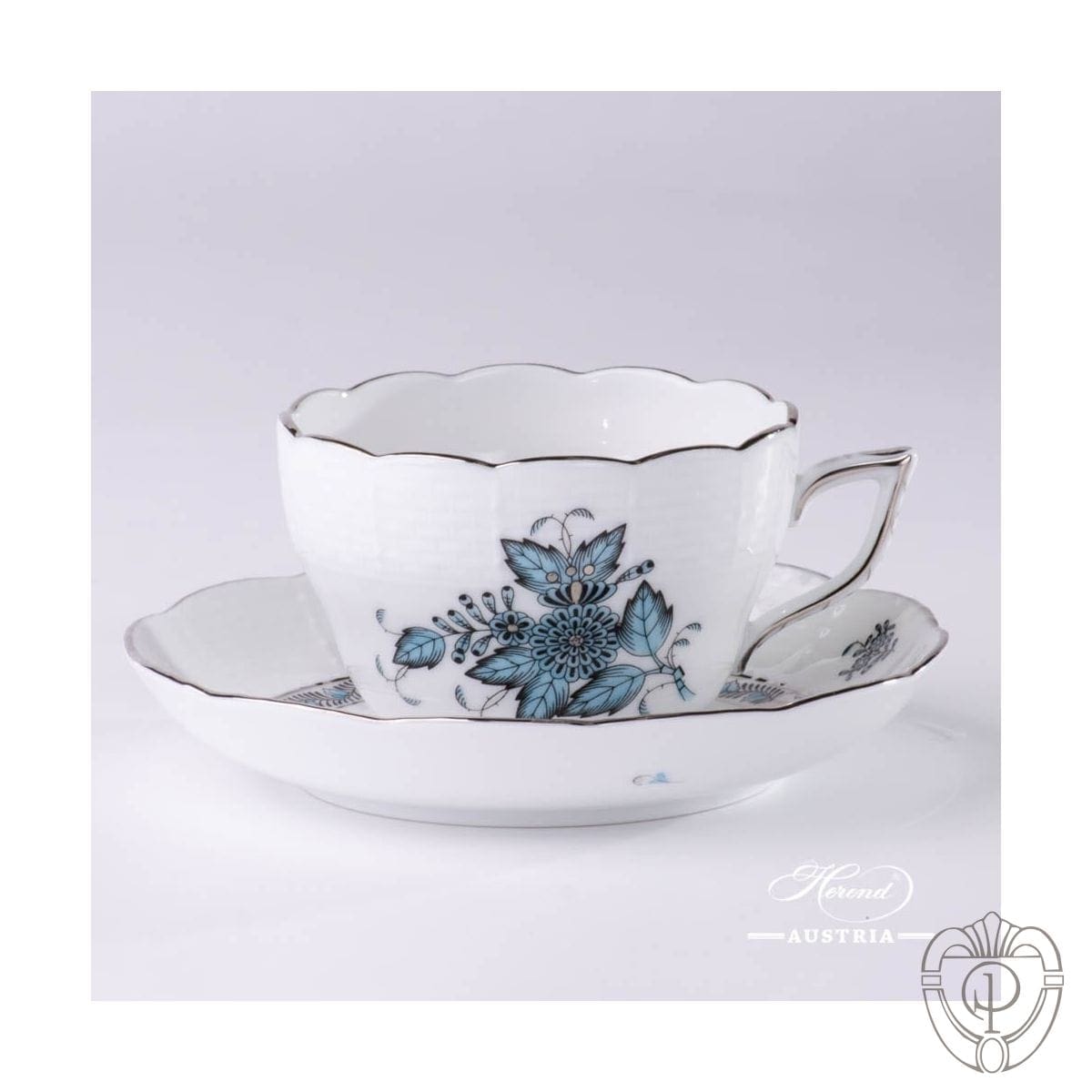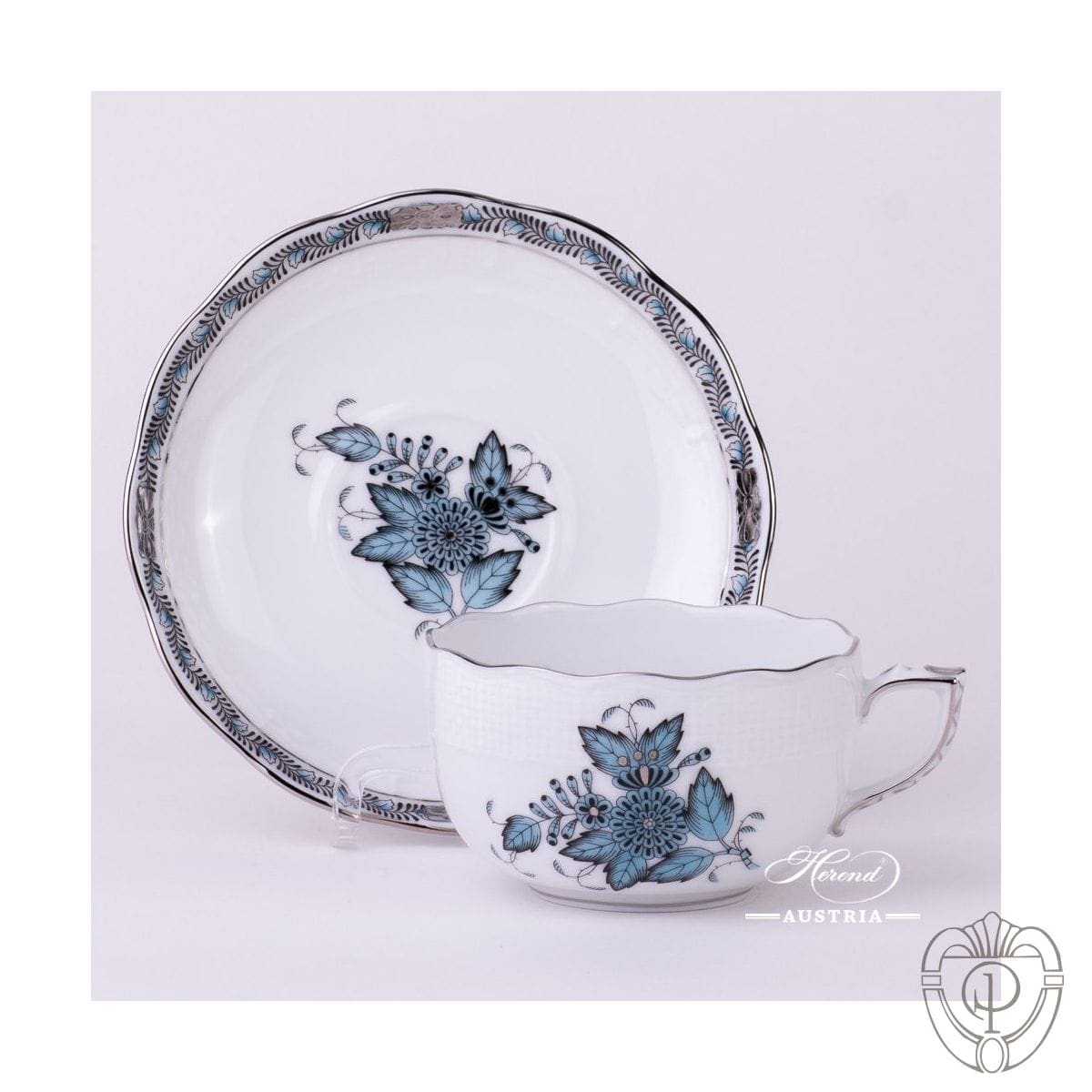 Questo splendido servizio Apponyi Herend in turchese e platino brillante è la versione attuale del famoso decoro inventato nel 900
