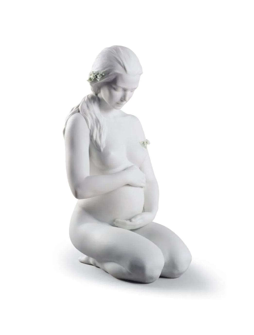 Serena e concentrata sulla nuova vita che cresce nel suo grembo, questa donna incinta simboleggia la bellezza e la pienezza della maternità. Un pezzo di porcellana bianca opaca, ideale come regalo per una futura mamma.