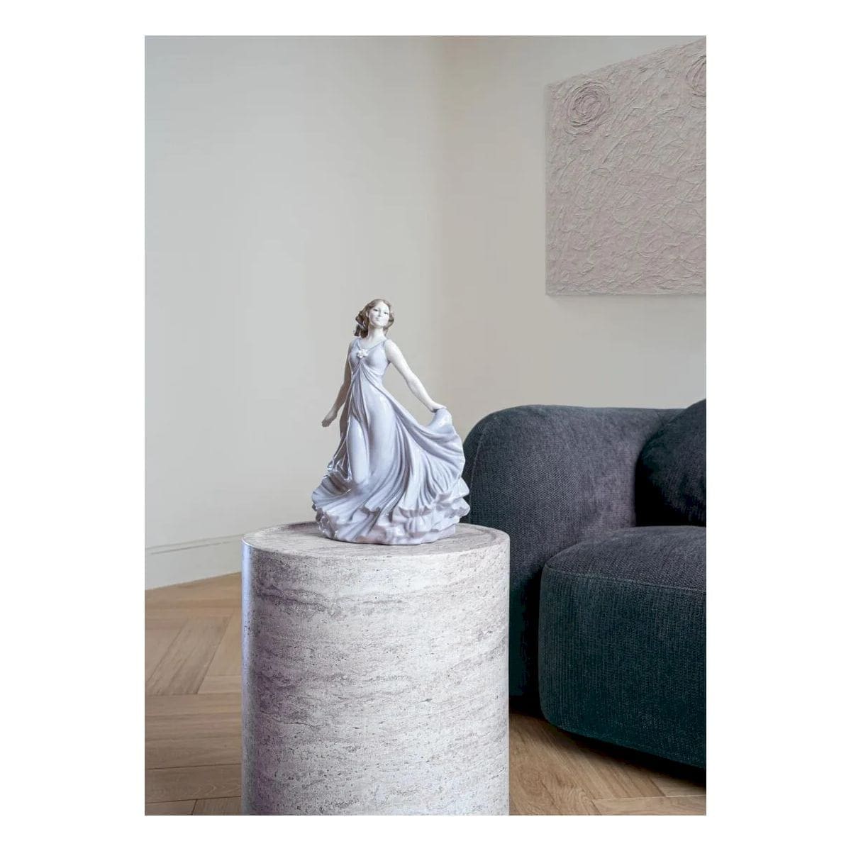 Scultura in porcellana raffigurante una donna che sembra danzare con il vento.