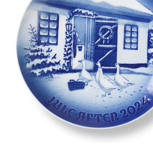 Il titolo del Bing & Grøndahl Annual Plate di quest’anno è “Natale in campagna”, che raffigura una tenera scenetta, in cui le oche hanno sentito il contadino nella stalla e ora attendono con ansia il loro pasto. Come sempre, la decorazione del Bing & Grøndahl Annual Plate è stata ideata da Dag Samsund.