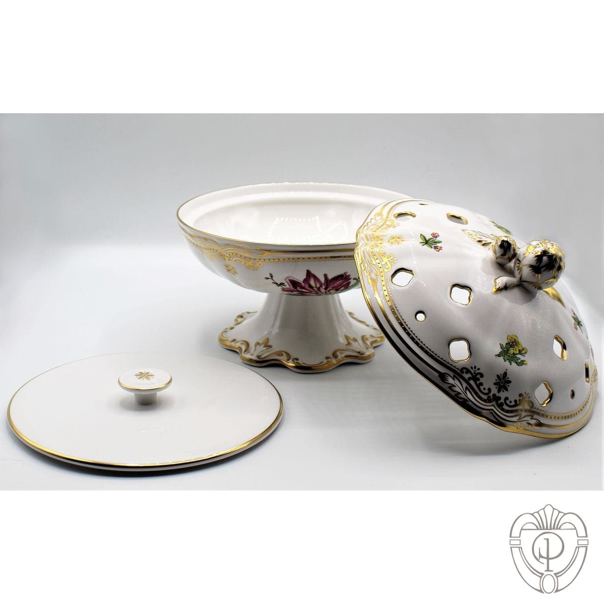 Spode pot pourri decoro stafford flowers in porcellana bone china. Decoro floreale interamente dipinto a mano con riporti in oro. Doppio coperchio traforato.