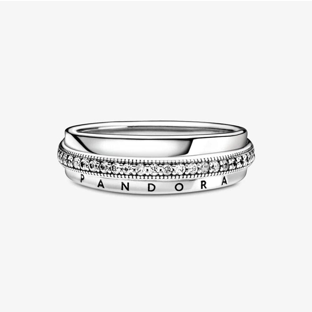 Rendi più raffinato qualsiasi look indossando questo Anello con pavé a tripla fascia. Con tre fasce fisse, una delle quali in rilievo, l’anello in Argento Sterling 925 presenta numerosi e unici. La fascia più grande scintilla grazie al pavé di pietre di zirconia cubica incolori, la fascia di mezzo è lucidata, mentre la più piccola è stampata in rilievo con il logo Pandora. Ispirato alla galassia e alle strutture a spirale del sistema solare, questo anello diventerà il tuo nuovo gioiello passepartout.