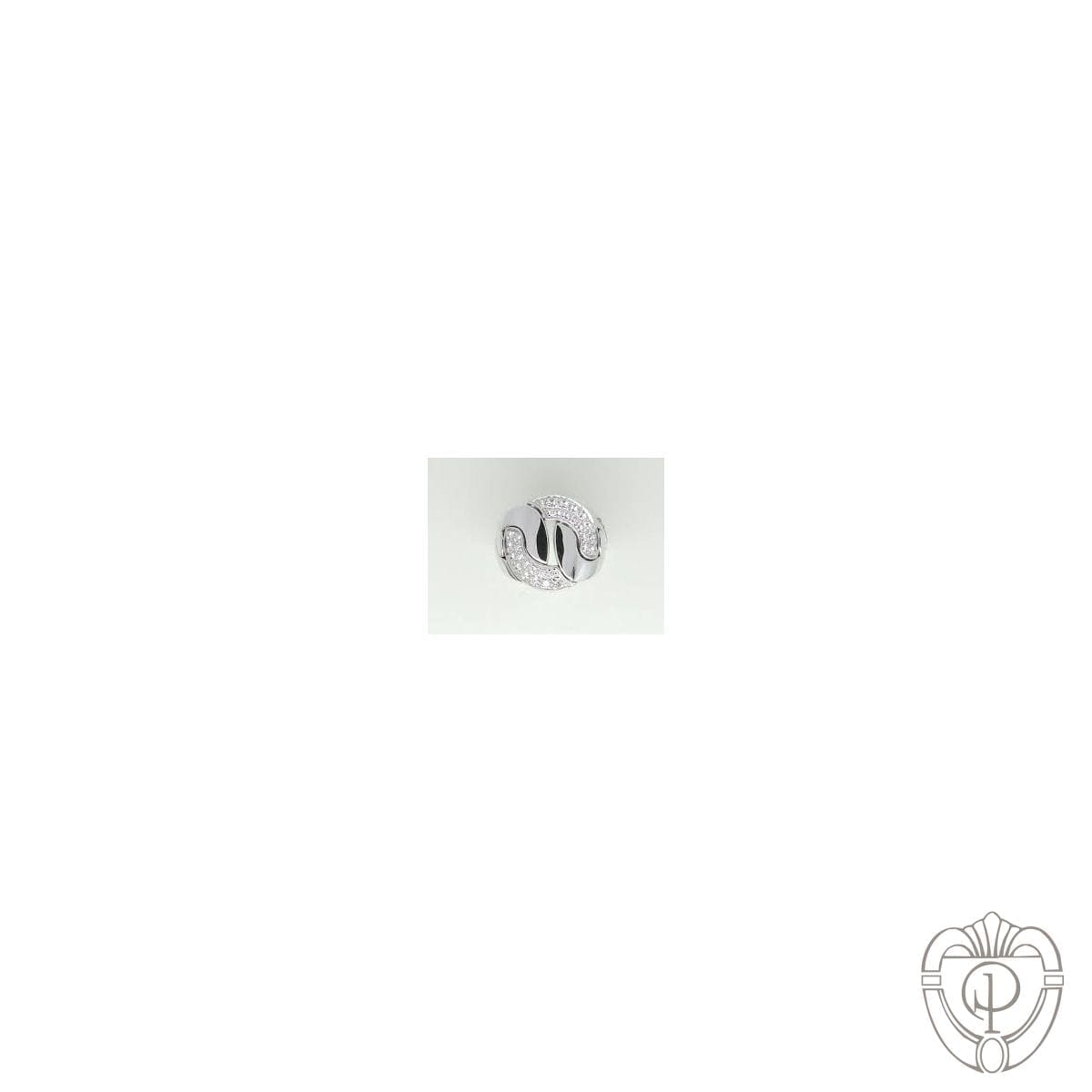 Anello SALVINI oro bianco e diamanti taglio brillante della collezione CRUISE con ampio centrale in pavé disegno a grumette a maglie mobili, lavorazione in microfusione con decori anche sulla parte interna.