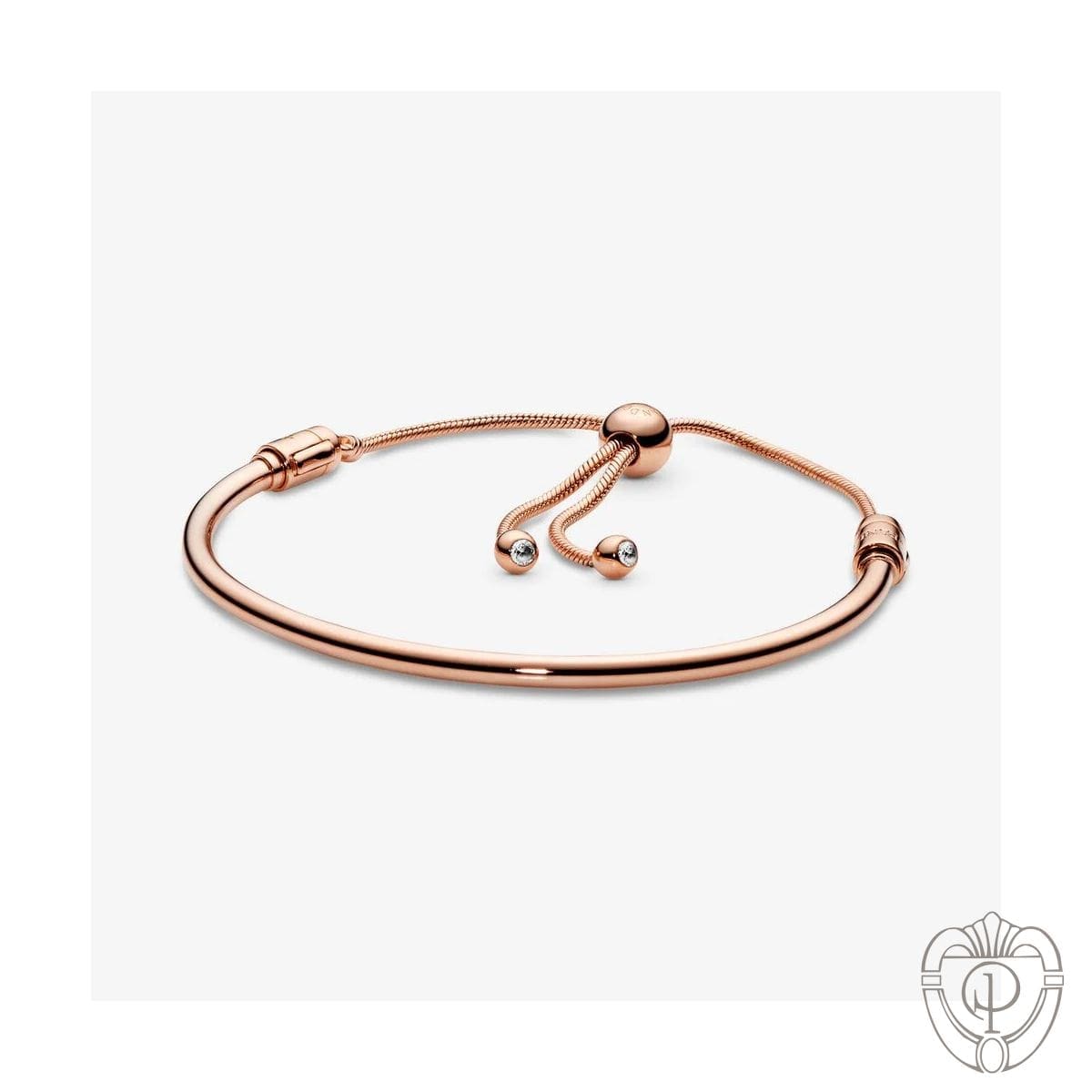 L’aspetto pulito e moderno del bracciale rigido incontra la modernità della chiusura scorrevole in Pandora Rose, la nostra esclusiva lega metallica placcata in Oro Rosa 14K. Basta far scorrere la chiusura per creare una vestibilità perfetta. Pietre chiare danno un tocco scintillante alla chiusura.