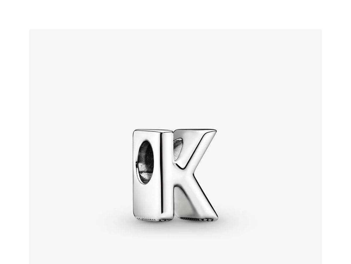 Questo delicato charm rappresenta la lettera K abbinata a una decorazione con cuori nella parte posteriore. Insieme ad altri charm crea messaggi unici.