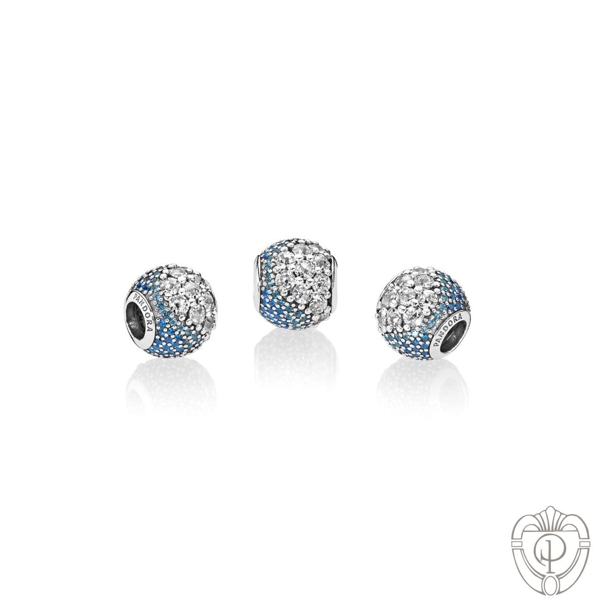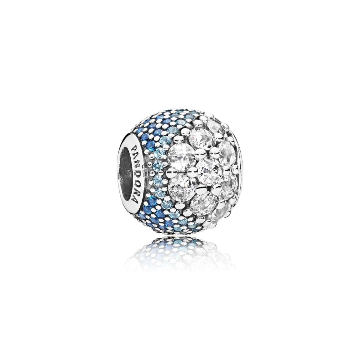 Un mix di pietre bianche e blu di diverse dimensioni delineano un’immagine intrigante grazie allo straordinario design in pave. Quando la luce colpisce le pietre, il charm risplende di vita.