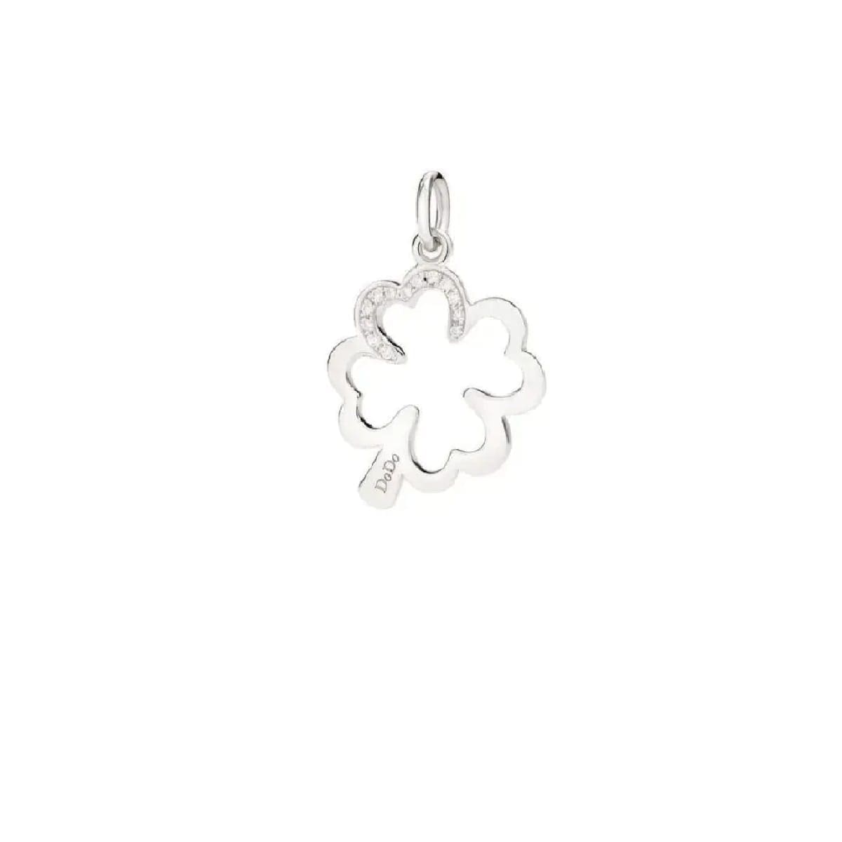 Ciondolo Quadrifoglio Silhouette in oro bianco 9 kt con diamanti bianchi.