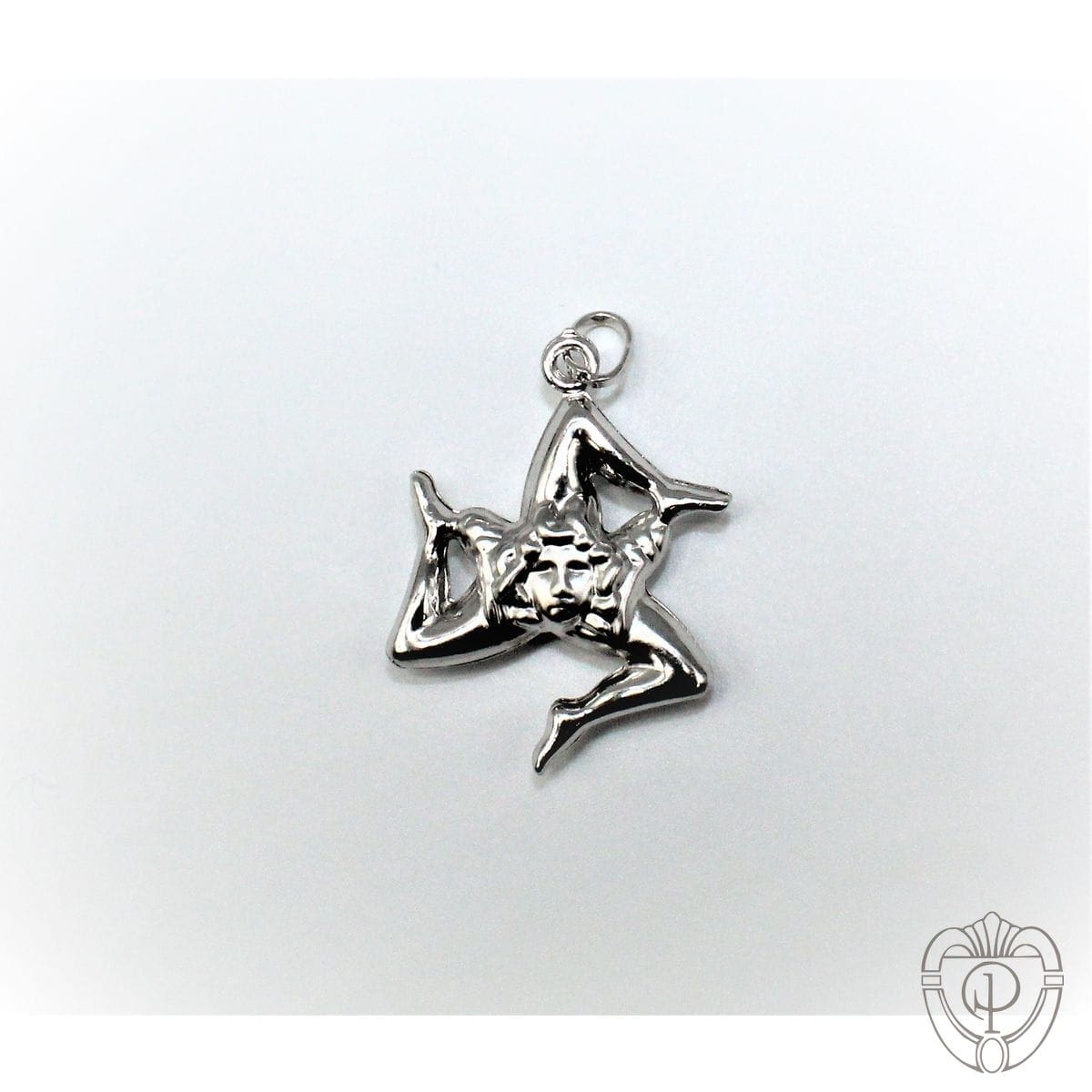Ciondolo tridimensionale a forma di Trinacria, simbolo della Sicilia in oro bianco 18 kt
