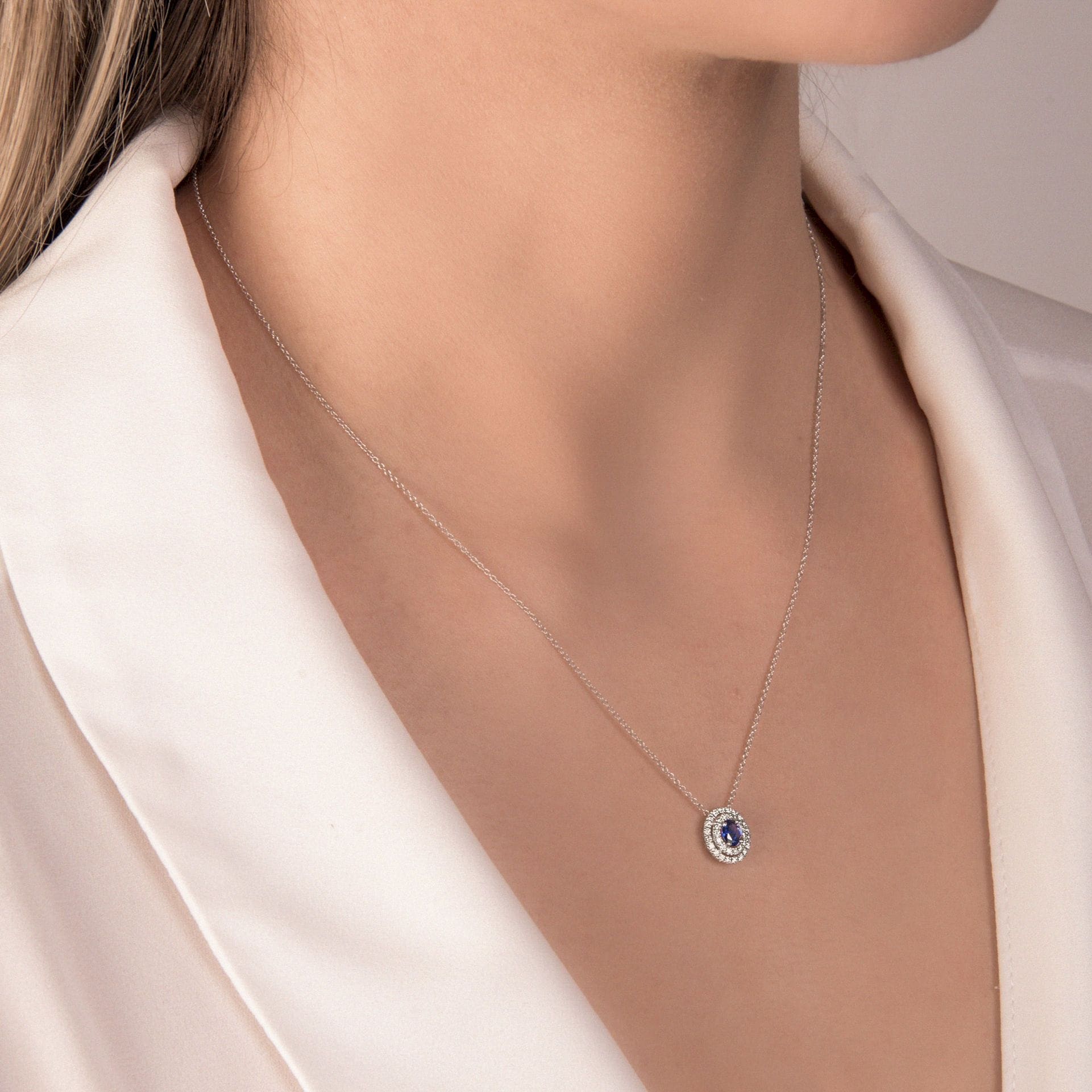Mirco Visconti Girocollo con Zaffiro Ovale e Diamanti in Oro Bianco