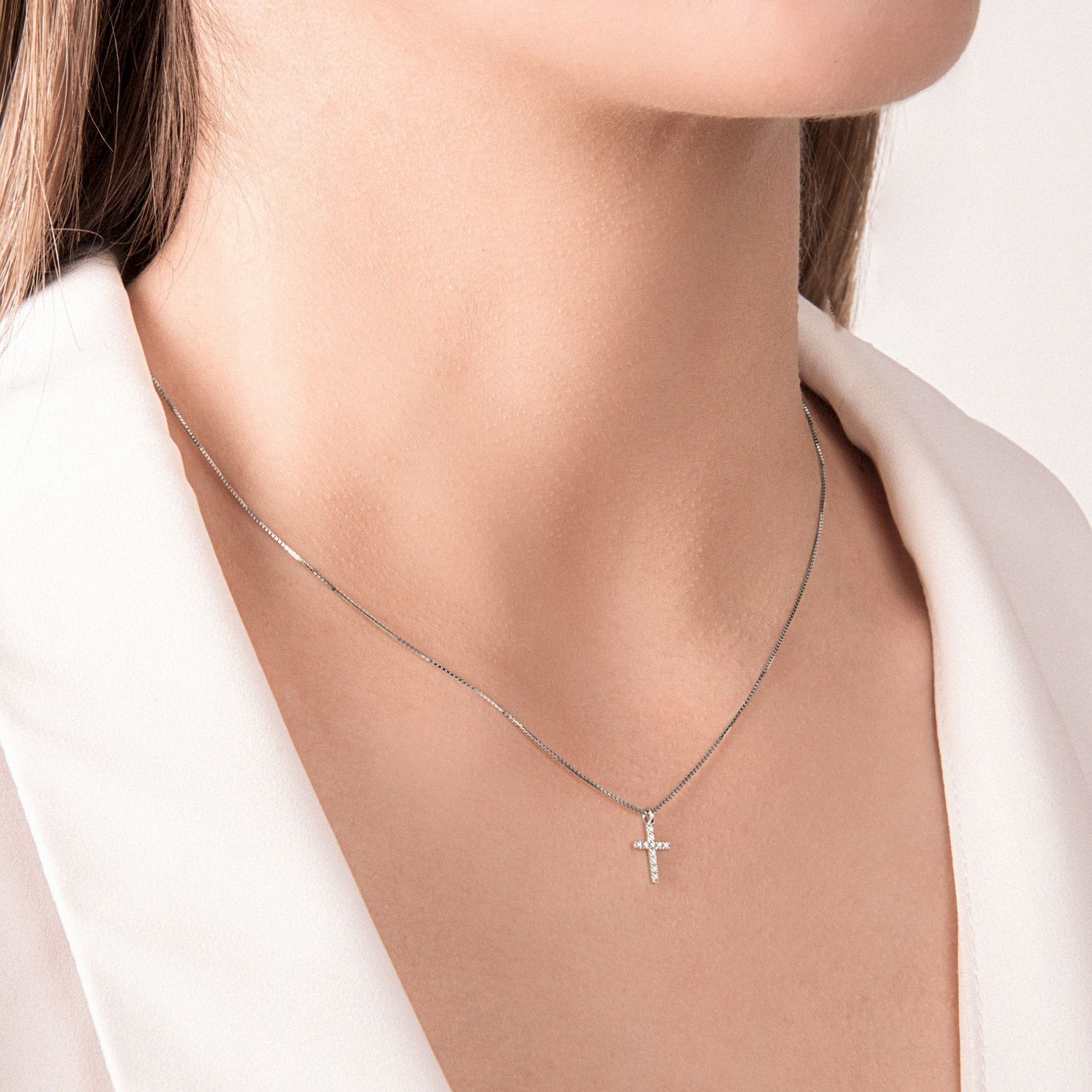 Mirco Visconti Girocollo in Oro Bianco con Croce Diamanti