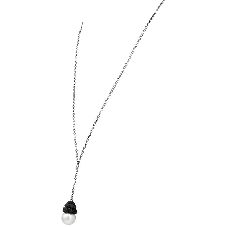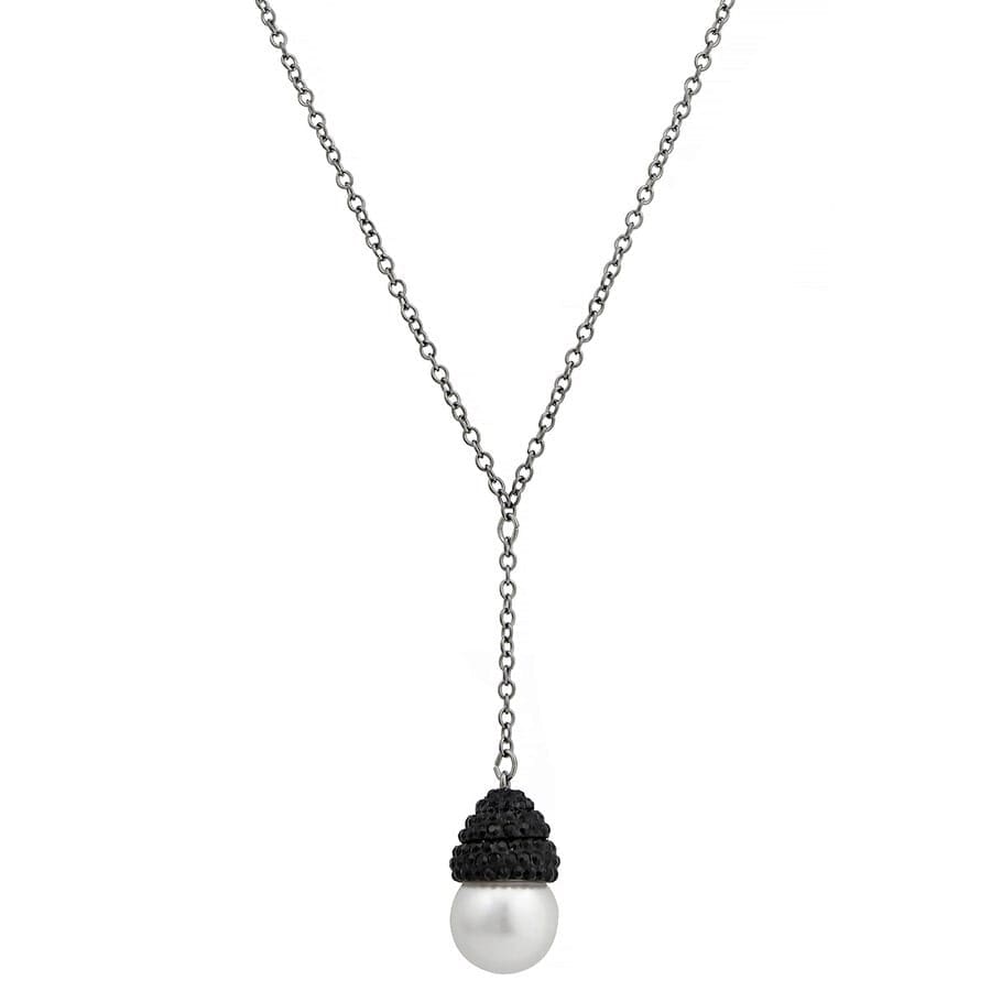Collana Swarovski in acciaio rodiato, ciondolo con perla bianca e cristalli di colore nero
