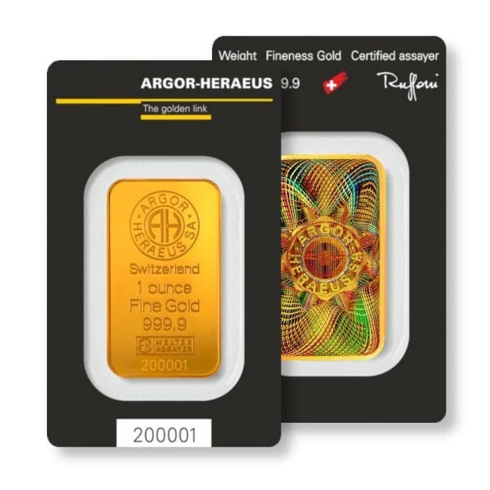 Lingotto in oro Argor-Heraeus gr. 31,10 – 1 Oncia