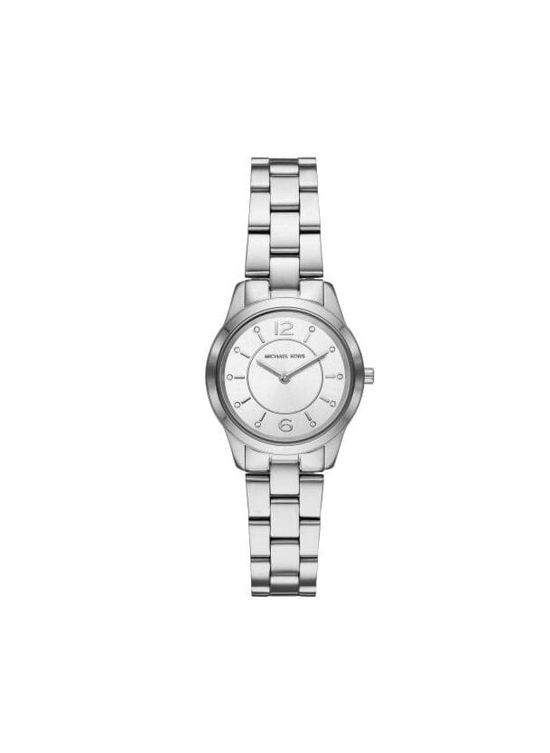 L’orologio da donna Michael Kors fa parte della collezione Mini Runaway, è realizzato interamente in acciaio, movimento al quarzo ed è di colore argentato. La cassa misura 2,8 cm ed ha un display analogico senza datario. L’orologio è impermeabile fino a 5 atm, quindi può tollerare piccole immersioni, ma non la pressione dell’acqua (come nella doccia o durante un tuffo).