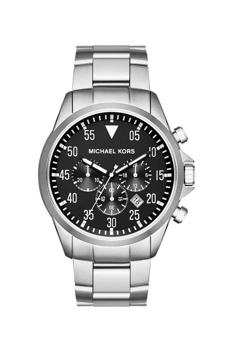 Orologio da polso casual Michael Kors GAGE MK8413 cronografo uomo con movimento al quarzo, cassa in acciaio inossidabile di diametro 45 mm, quadrante nero, vetro minerale e cinturino in acciaio inossidabile di colore argento.