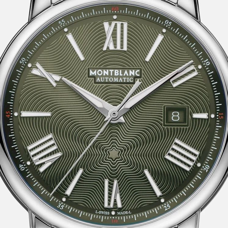 Il Montblanc Star Legacy Automatic Date in edizione limitata di 800 esemplari è impreziosito da un quadrante verde con l’iconico motivo a stella variabile Montblanc e con indici a forma di spada e numeri finitura rodio. È alimentato dal movimento automatico MB 24.17 che indica ore, minuti, secondi e data. In termini di design, il segnatempo si ispira agli orologi da tasca Minerva della fine del XIX secolo e inizio del XX con le loro casse rotonde, lucide e a forma di ciottolo e le corone a cipolla. Questo segnatempo è altresì dotato di un bracciale in acciaio pregiato intercambiabile.