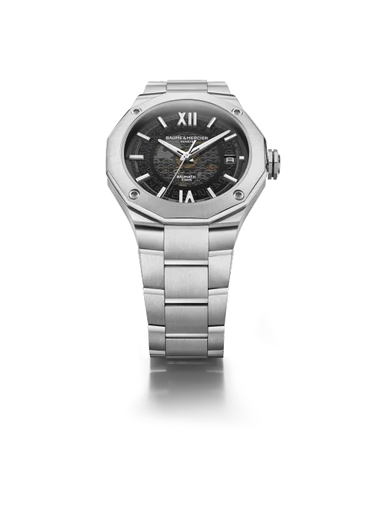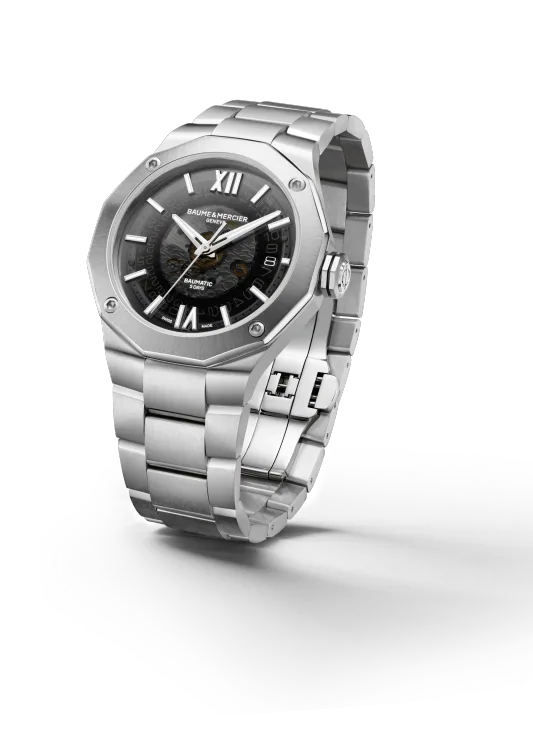 La versione 2022 del Riviera Baumatic è disponibile con quadrante in vetro zaffiro grigio fumé e bracciale integrato in acciaio. La decorazione introdotta nel 2021 è divenuta il marchio distintivo di questi modelli, ognuno dei quali è dotato di un movimento di Manifattura Baumatic. La sua trasparenza offre la vista dei ruotismi del calibro Baumatic dalle prestazioni collaudate. Impeccabile non solo dal punto di vista tecnico, questo segnatempo cerca di soddisfare le aspettative dei suoi futuri proprietari mirando all’eccellenza, allo stile, alla comfort e alla coerenza di tutti i suoi elementi. In poche parole: incarna la visione che la Maison ha dell’orologeria maschile.