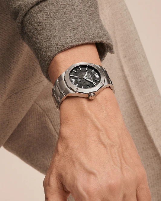 Animato dal prestigioso calibro di Manifattura Baumatic, il Riviera 10702 è l’orologio svizzero “all roads” per eccellenza. Il quadrante in vetro grigio fumé trasparente, il bracciale intercambiabile in metallo e il fondello aperto completano il look sportivo di questo segnatempo “Swiss made”.
