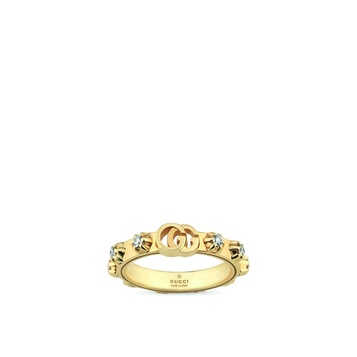 Anello gucci in oro giallo 18kt con gg running e diamanti bianchi