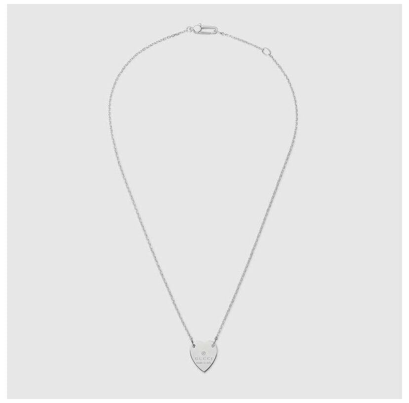 Un design senza tempo, questa collana è definita da un ciondolo a cuore con inciso il Gucci trademark. Realizzato in argento 925, il gioiello riflette l’ispirazione romantica della Maison.