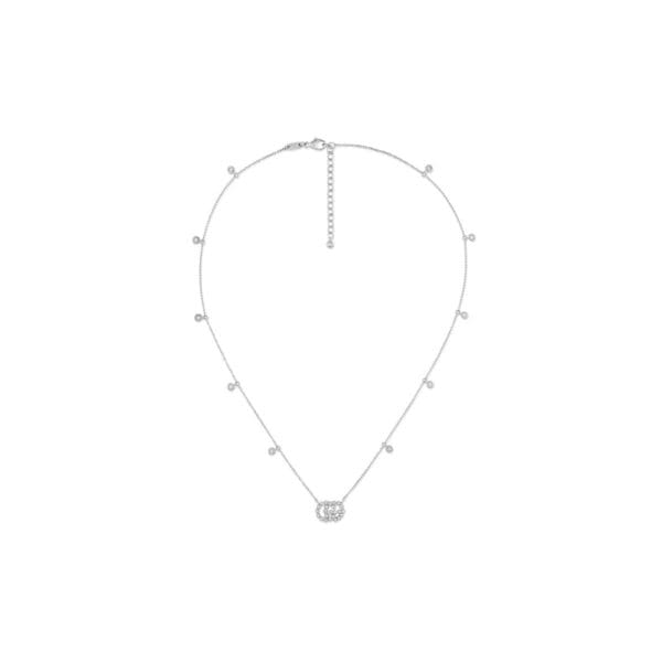 Ispirato allo spirito estivo e ai beach club della costa italiana, questo articolo fa parte della linea Gucci Lido. Il motivo Incrocio GG viene reinterpretato in chiave contemporanea su nuovi anelli a doppia fascia e spessi orecchini a cerchio. Morbidi bracciali e collane a catena sono impreziositi dal motivo sotto forma di dettaglio con logo. Questa lunga collana, con chiusura a moschettone, sfoggia il pendente con dettaglio cut-out.