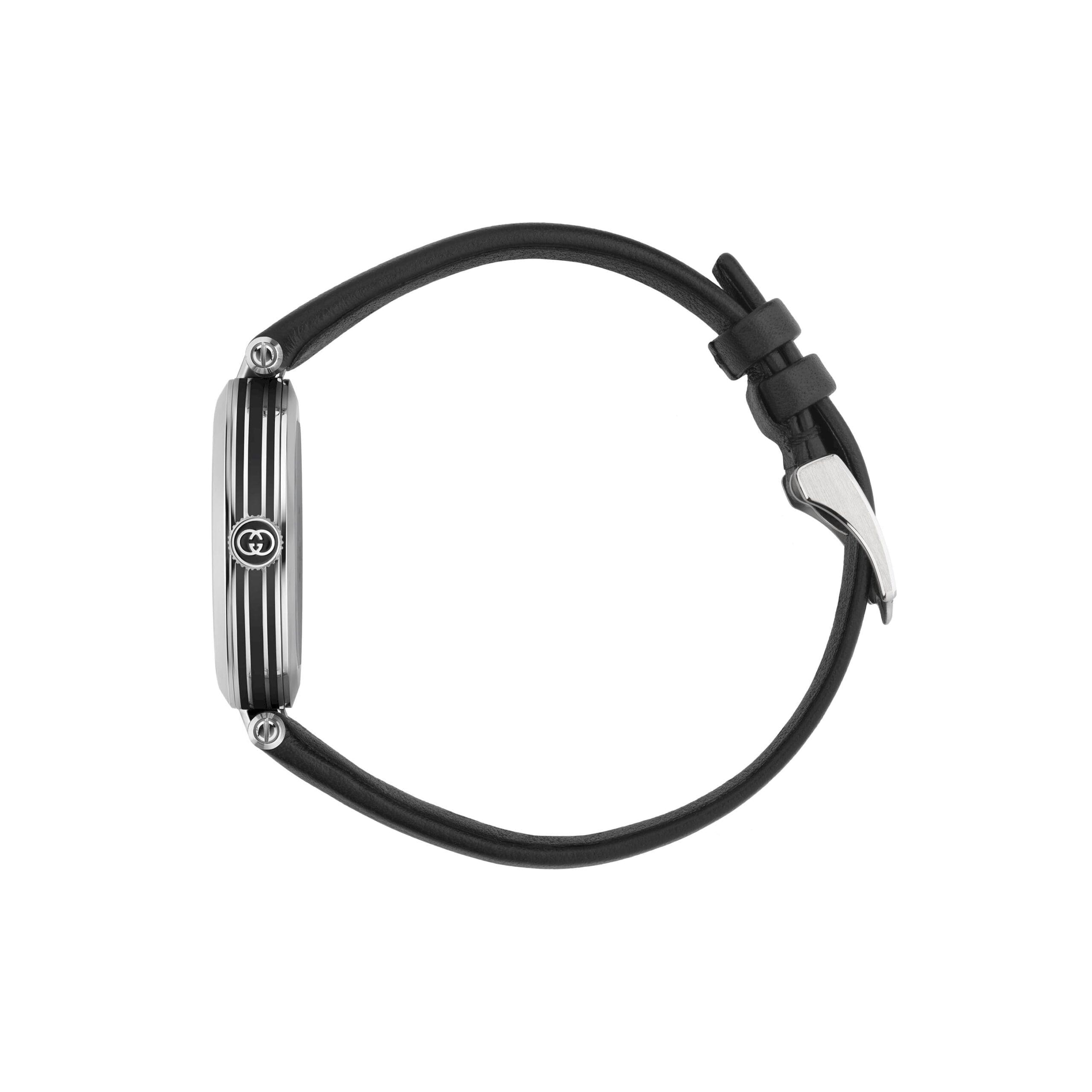 Per la collezione Cruise 2025, il look raffinato e minimalista abbraccia anche gioielli e orologi. Ispirato ai codici d’archivio, il design del Modello 2000 combina lo stile italiano con la maestria artigianale svizzera. Caratterizzato da un cinturino in pelle nera, questo orologio presenta un quadrante nero guilloché impreziosito dai codici emblematici della Maison.